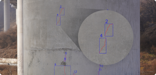 AI를 통한 균열, 백태, 철근 노출 등 자동 탐지 및 분석