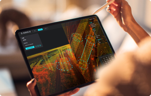 라이다 센서를 활용해 현장의 모든 데이터를 3D로 실시간 수집합니다.
