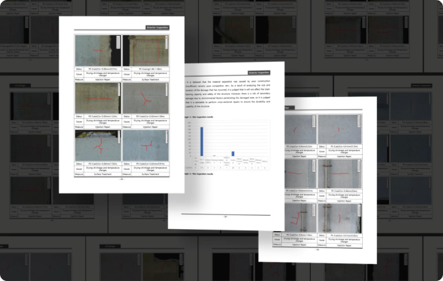 외관 조사망도와 진단 보고서를 자동으로 생성하고, 시설물 손상까지 AI가 즉시 판별합니다.